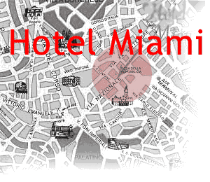 Recently renovated, the Hotel Miami is situated in the historical center, in a splendid "Umbertino" building facing one of the most beautiful streets of Rome. Its privileged position, just a few minutes walk to the Spanish Steps, Trevi Fountain, The Roman Forum and Colosseum, allows easy access to the public transport network, which will take you to every corner of the eternal city. The hotel boasts 127 rooms, renovated in the year 2002 and equipped with air conditioning, heating, private bathroom, hairdryer, direct dial telephone, mini bar, satellite TV, and safe deposit box. Guests are provided with 24 hours concierge, coffee bar, sightseeing tours, laundry service, fax service, ups service, baby sitting (on request), parking facilities near by, money exchange, rentals: cars, scooters and bicycles, airport transfers, luggage store. The hotel accepts major credit cards. |